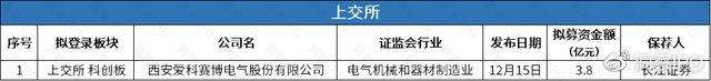 12月15日,西安爱科赛博电气股份有限公司(简称:爱科赛博)科创板IPO获上交所受理,保荐机构为长江证券。