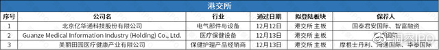 12月12日-12月18日,港交所有3家公司通过聆讯。